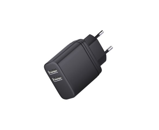 Сетевое зарядное устройство 2USB, 3A, черное