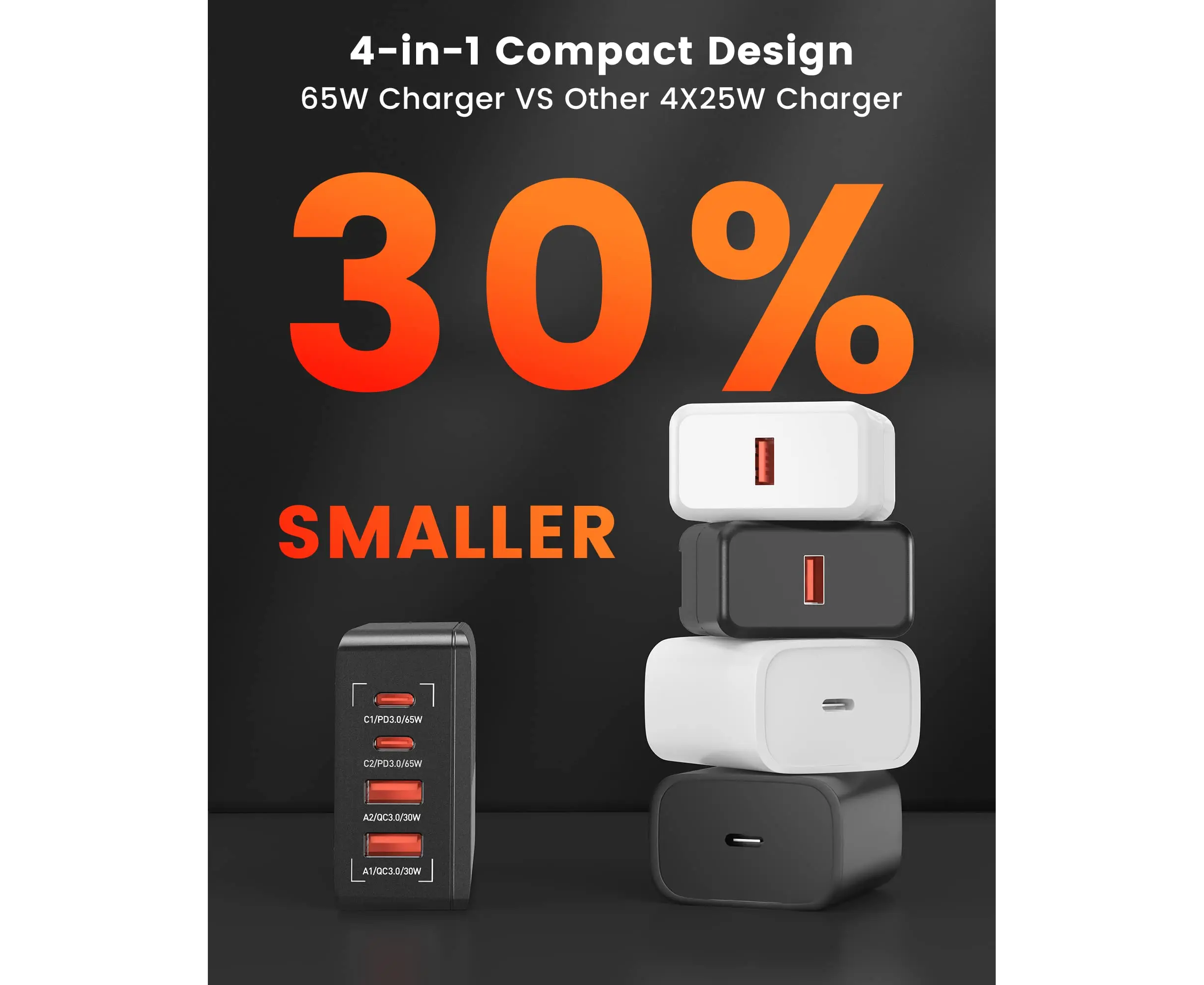 Универсальное зарядное устройство LDNIO A4808Q 65W 2*USB-C 2*USB Чёрный Компактный и портативный настольный блок мощностью зарядки в 65W встроенными протоколами быстрой зарядки делает настольный блок зарядки LDNIO незаменимым в повседневной жизни для зарядки повседневных гаджетов и аксессуаров. USB-C1):5V-3A,9V-3A,12V-3A ,15V-3A,20V-3.25A [65W MAX] (USB-C2): 5V-3A,9V-2.22A,12V-1.67A [20W MAX] (USB-A1):5V-3A,9V-3A,12V-2.5A [30W MAX] (USB-A1):5V-3A,9V-3A,12V-2.5A [30W MAX]