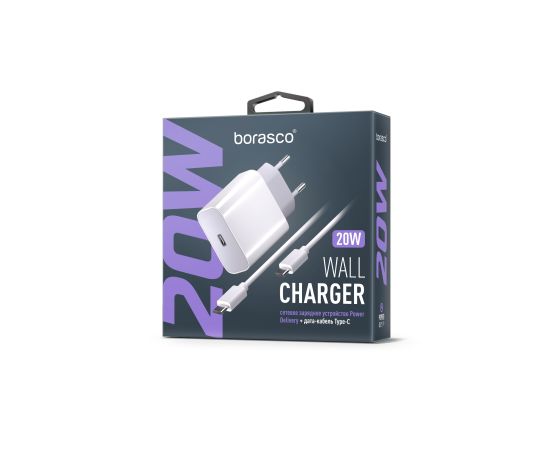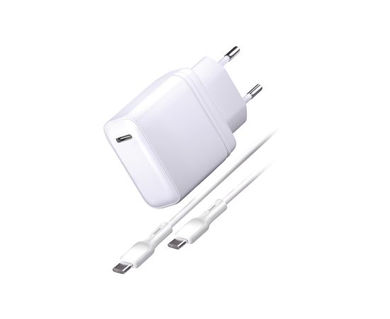 Сетевое зарядное устройство Power Delivery, 20W + Дата-кабель Type-C - Type-C, 3А, 1м, белое