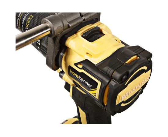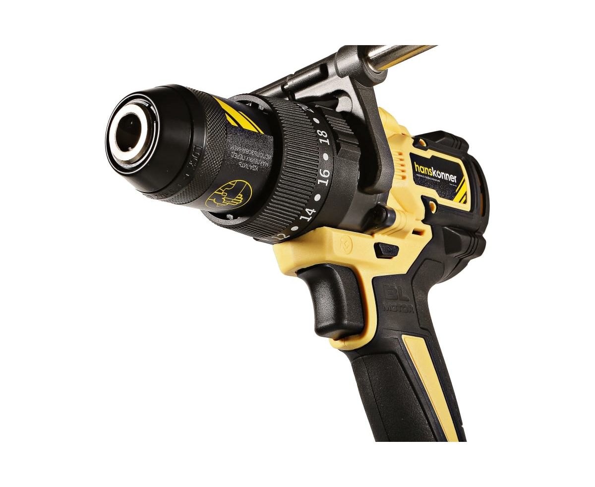 Аккумуляторная ударная дрель-шуруповерт Hanskonner подходит для любых работ, в том числе в стесненных условиях и труднодоступных местах без снижения производительности и потери качества работ. Мощный крутящий момент 165 Н·м позволяет использовать инструмент в 5 полноценных функциях: шуруповерт, ударная дрель, низкооборотистая дрель, ледобур, миксер. Компактный и легкий бесщеточный двигатель имеет выгодные параметры работы: