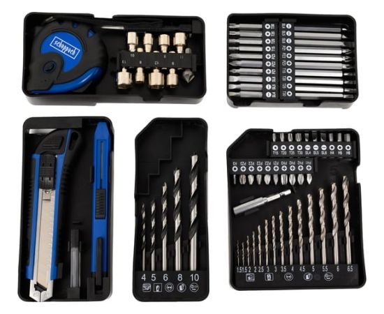 Всё необходимое в одном кейсе — от сверл до измерительных инструментов для полного цикла работ