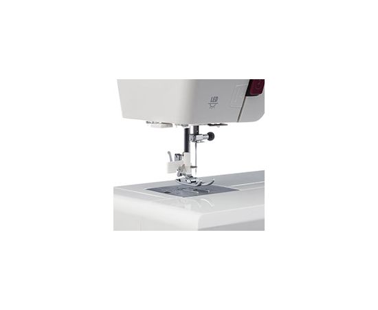Штопальная пластина закрывает рейки нижнего транспортёра, что очень удобно для выполнения свободно-ходовой стёжки и пришивания пуговиц. В комплекте с машиной поставляются все необходимые аксессуары и расширительный столик, что делает работу с машиной еще более комфортной.