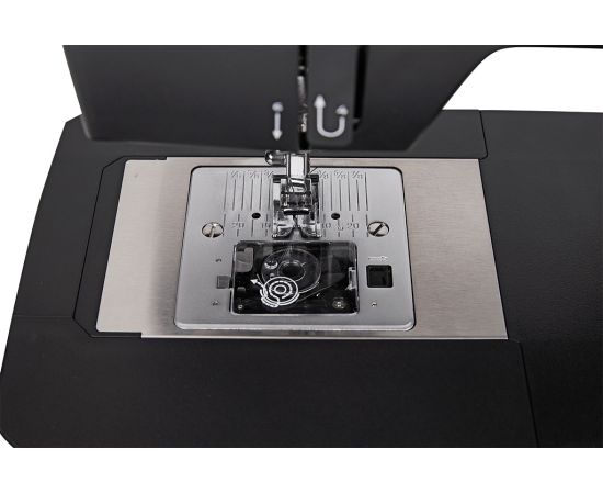 С помощью регулятора скорости шитья можно установить максимальную скорость 800 ст./мин. Кнопкой устанавливается положение иглы: при окончании шитья игла может останавливаться в нижнем положении и удерживать ткань. Используя кнопку Старт/Стоп, можно уверенно шить без педали.