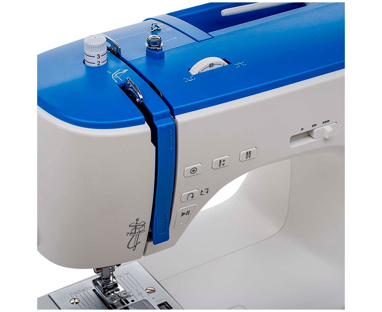 Дополнительные функции кнопка реверса, переключатель положения иглы (верх/низ), регулировка давления лапки на ткань, шитье без педали