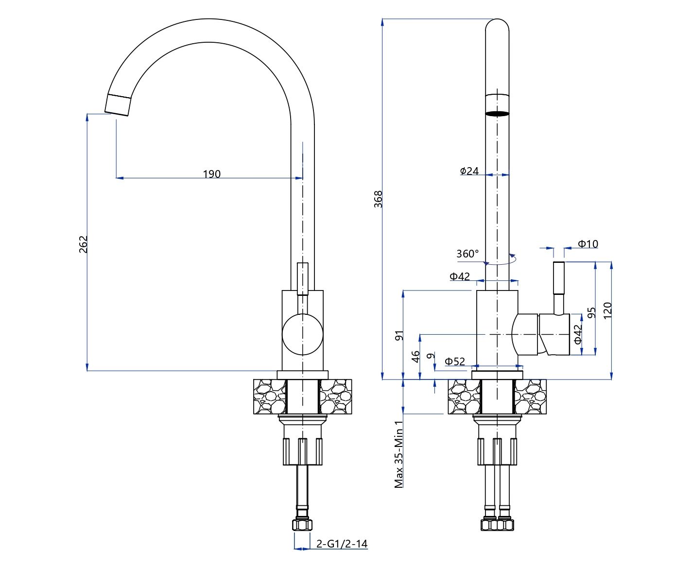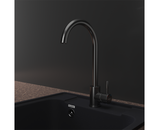 Смеситель для кухни GRANFEST Z-5410 PVD graphite quarz U-образный, нержавеющая сталь, поворотный излив