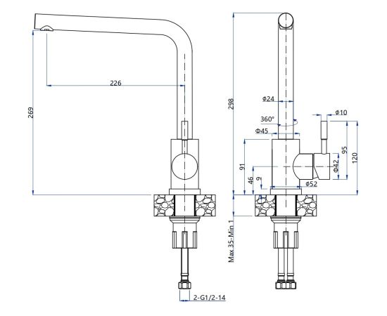 Поверхность смесителя окрашена в цвета кварцевых моек GranFest QUARZ.