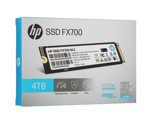 SSD HP FX700 4.0Tb (8U2N7AA#ABB) M.2 (PCI-E 4.0 x4, up to 7200/6200MBs, 3D NAND, 1600TBW, NVMe 2.0, 22х80mm, heatsink)