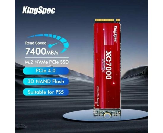 SSD KingSpec XG7000 Series (XG7000-2TB) 2.0Tb M.2 (PCI-E 4.0 x4, up to 7400/6600MBs, 3D TLC, 1200TBW, NVMe 1.4, 22х80mm, heat