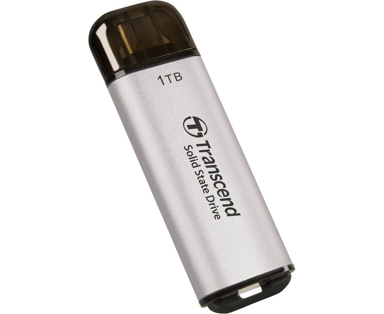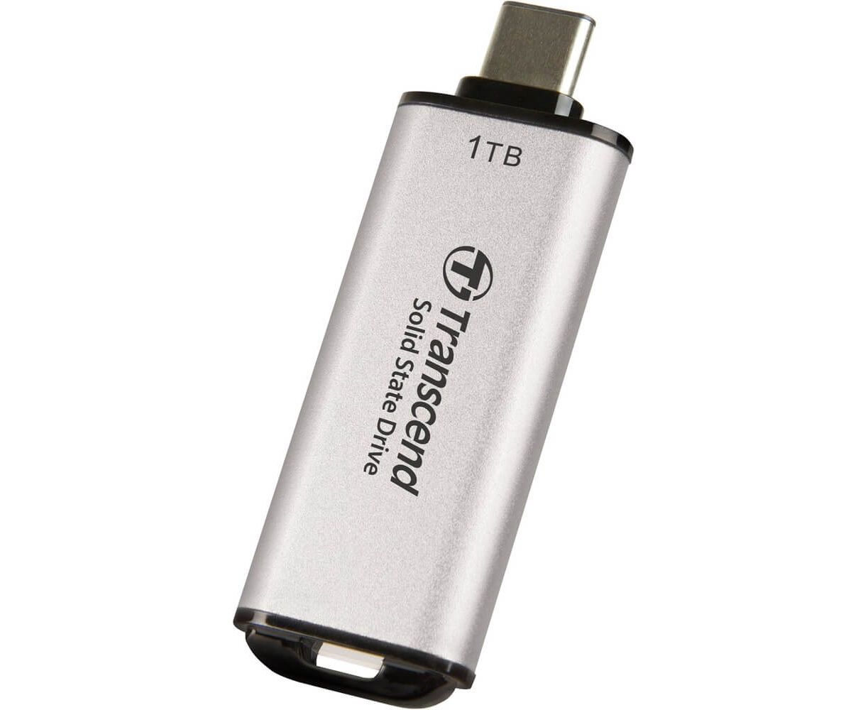 SSD Transcend ESD300 (TS1TESD300S) 1.0Tb (USB3.2 gen 2, Type C, 1050/950Mbs, 3D Nand, 60x20x7.8mm, 9g) серебристый