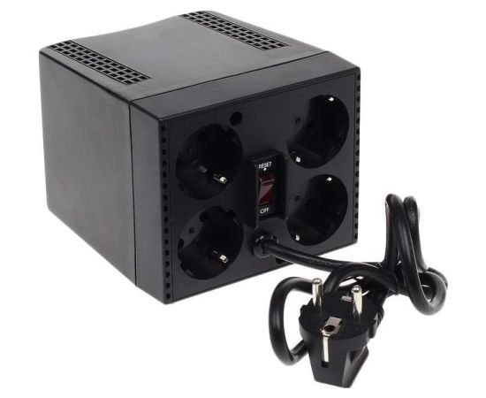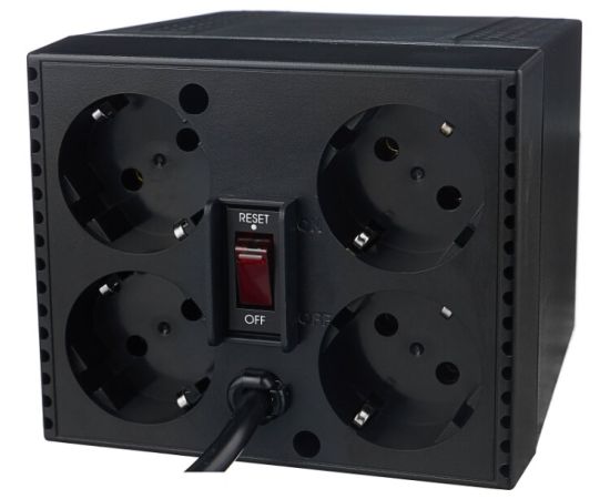 Особенности эффективность до 95%, потребляемая мощность менее 10 Вт, варистор для защиты от всплексов напряжения, стабилизация выходного напряжения +/- 5%, индикатор включения, индикатор пониженного напряжения, индикатор повышенного напряжения, все розетки оборудованны заземлением