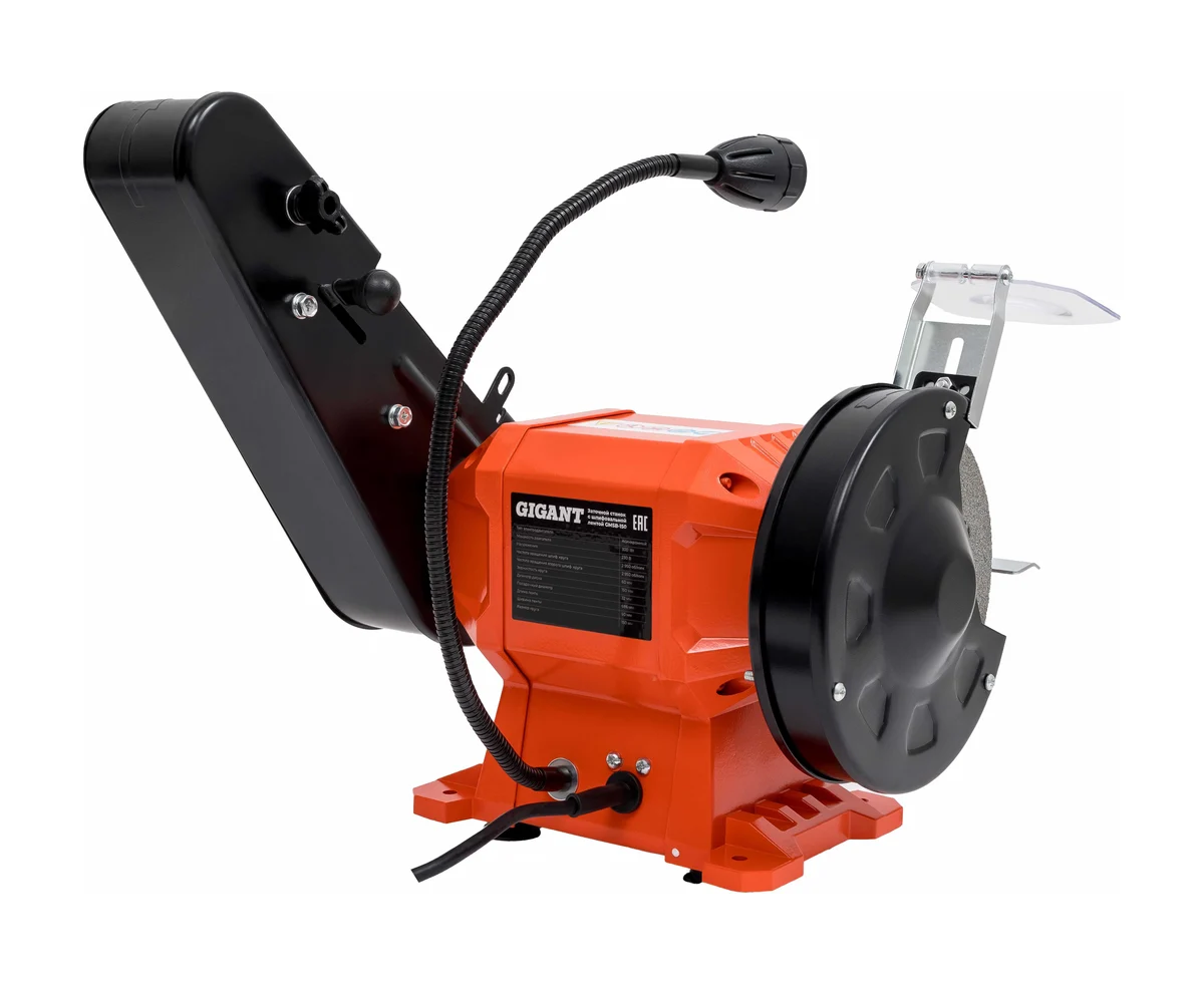 Заточной станок Gigant с шлифовальной лентой D-150мм GMSB-150 используется для заточки и шлифовки инструмента и металлических заготовок.