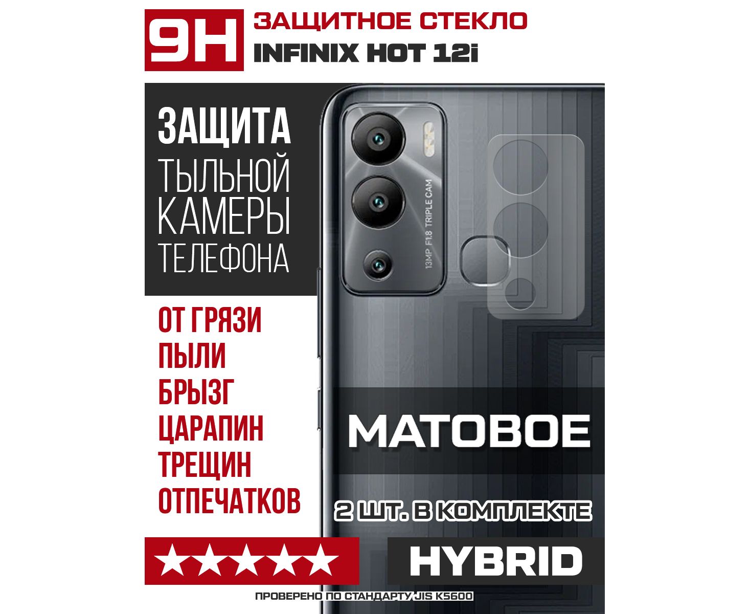 Стекло защитное гибридное МАТОВОЕ Krutoff для камеры INFINIX Hot 12i (2 шт.)