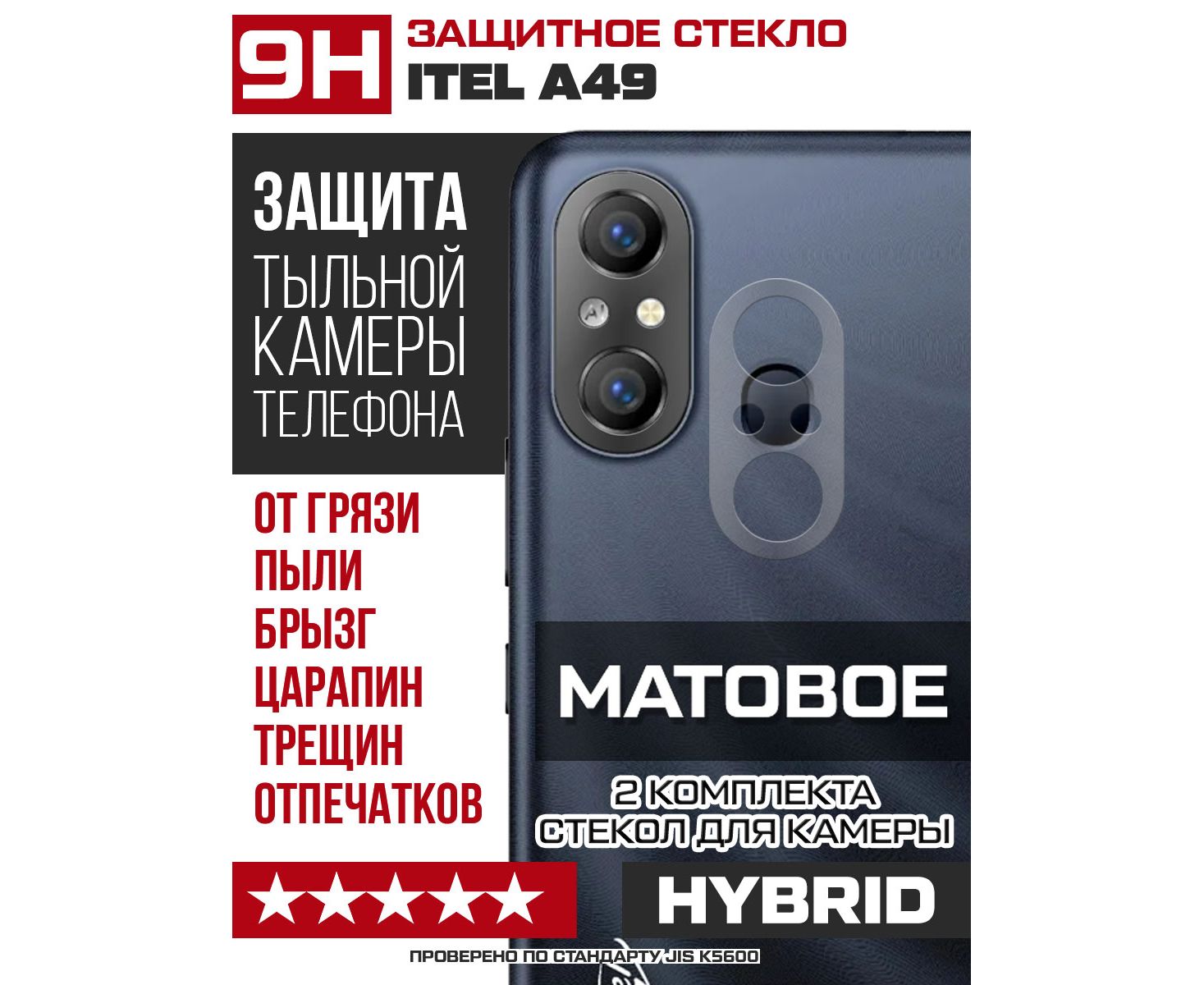 Стекло защитное гибридное МАТОВОЕ Krutoff для камеры ITEL A49 (2 шт.)