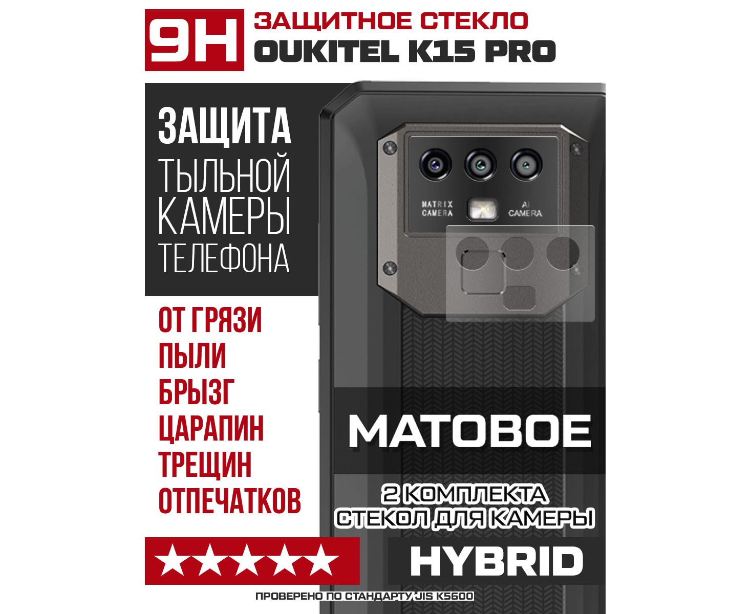 Стекло защитное гибридное МАТОВОЕ Krutoff для камеры Oukitel K15 Pro (2 шт.)
