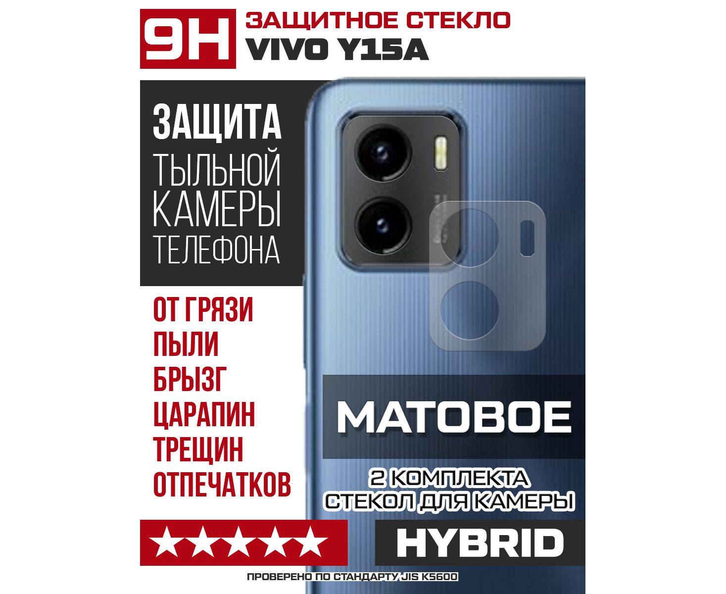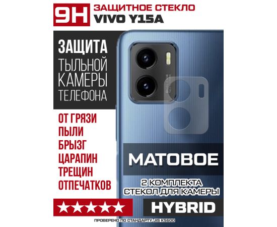 Стекло защитное гибридное МАТОВОЕ Krutoff для камеры Vivo Y15a (2 шт.)