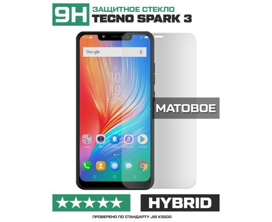 Стекло защитное гибридное МАТОВОЕ Krutoff для Tecno Spark 3
