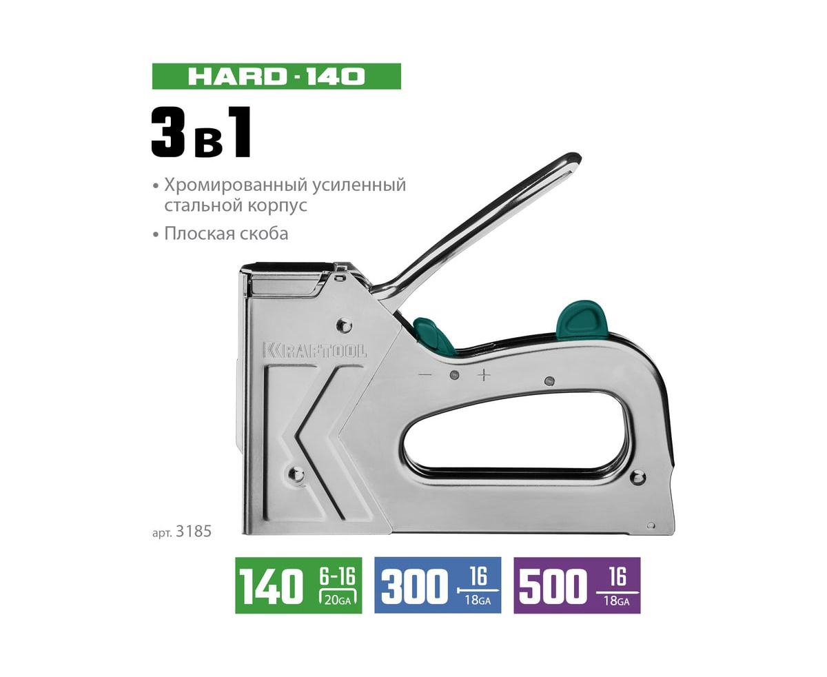 Степлер стальной тип 140, 300, 500, KRAFTOOL HARD-140, 3185 - профессиональный мощный стальной степлер с ударным механизмом рессорного типа, увеличенная мощность, удар без отдачи.
