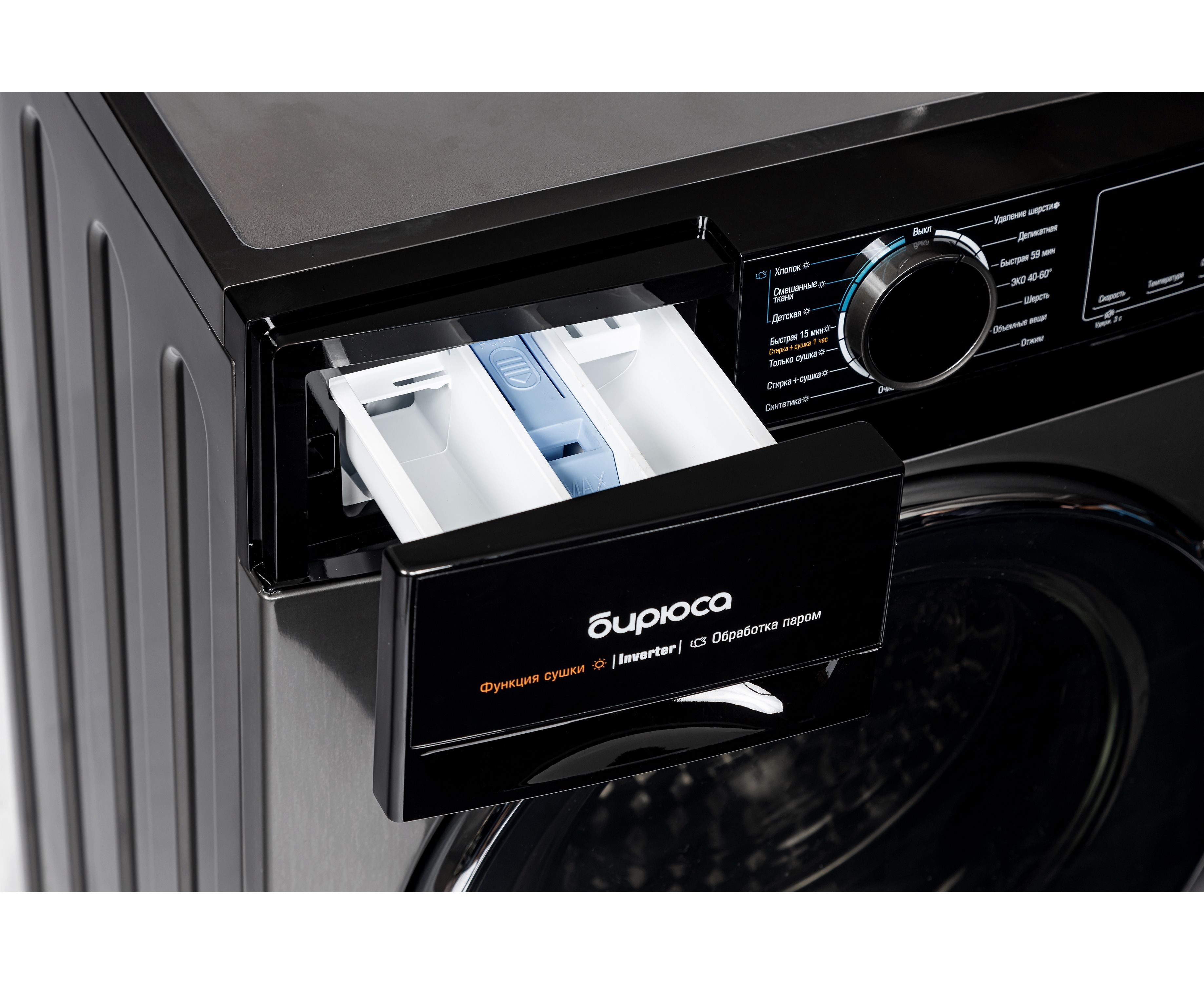 Специальные программы Стирка+сушка, Стирка+сушка 1 час, Сушка, Детская, Удаление шерсти, Шерсть, Объемные вещи, Очистка барабана