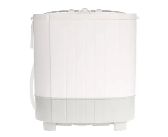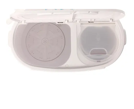 Небольшие габариты стиральной машины позволяют легко её переносить в случае необходимости. Вертикальный тип загрузки предусматривает в конструкции две откидные крышки, которые ведут в свои отделения: стиральное и секцию с отжимной центрифугой.