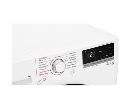 Стиральная машина LG F2V3HS4W с интеллектуальной системой определения типа ткани, загрузкой до 7 кг, 1200 об/мин. глубиной корпуса 45 см, мотор Inverter DD стирка с паром.