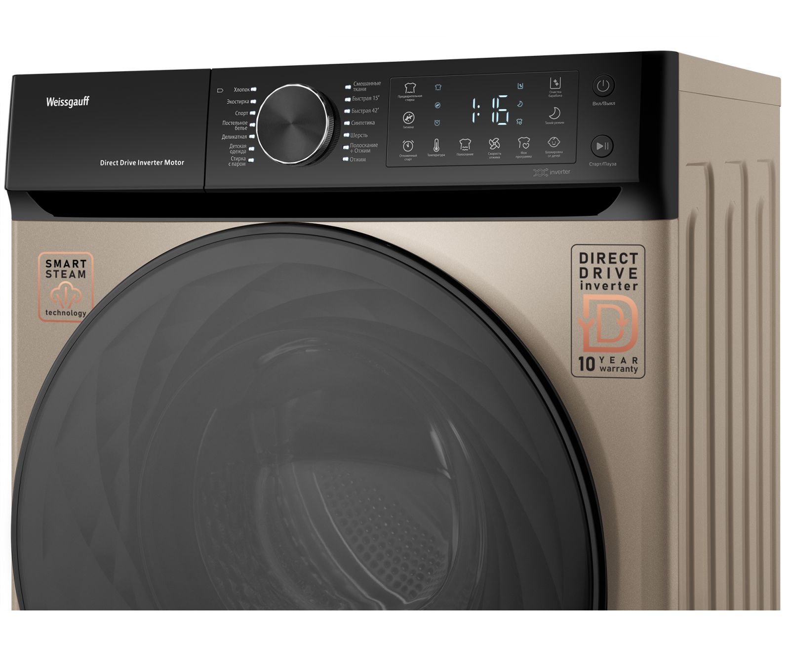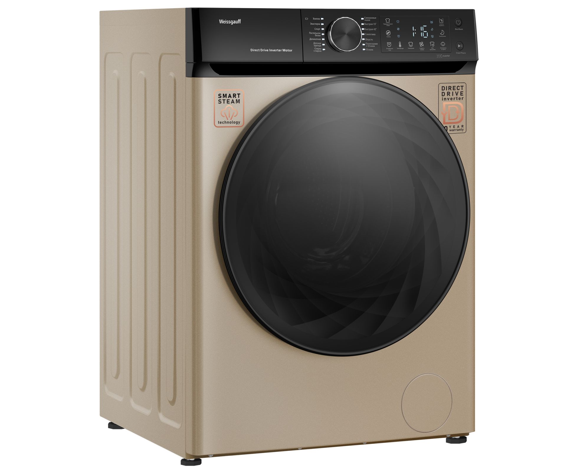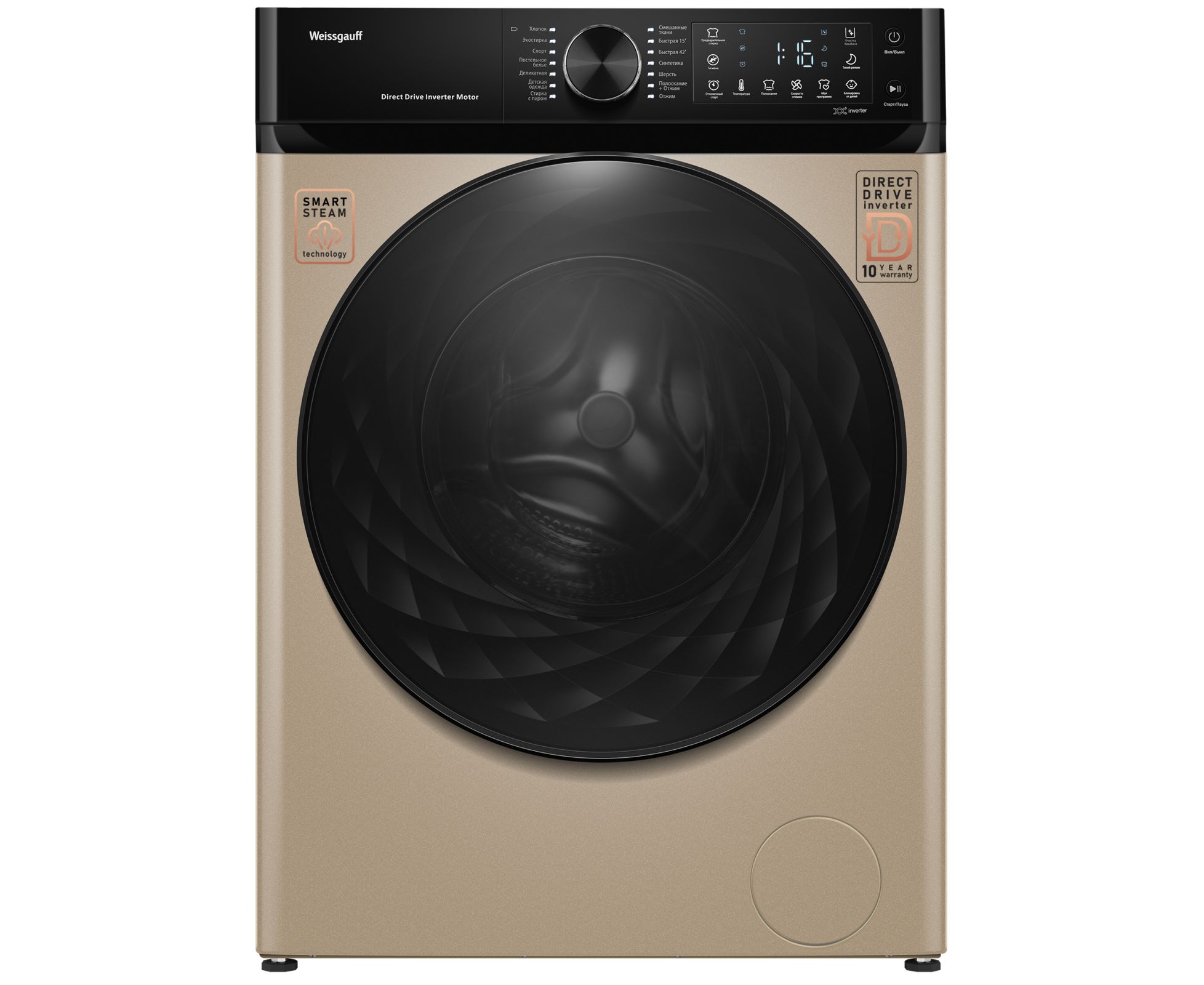 Стиральная машина Weissgauff WM 59411 Direct Drive Inverter Steam Champagne