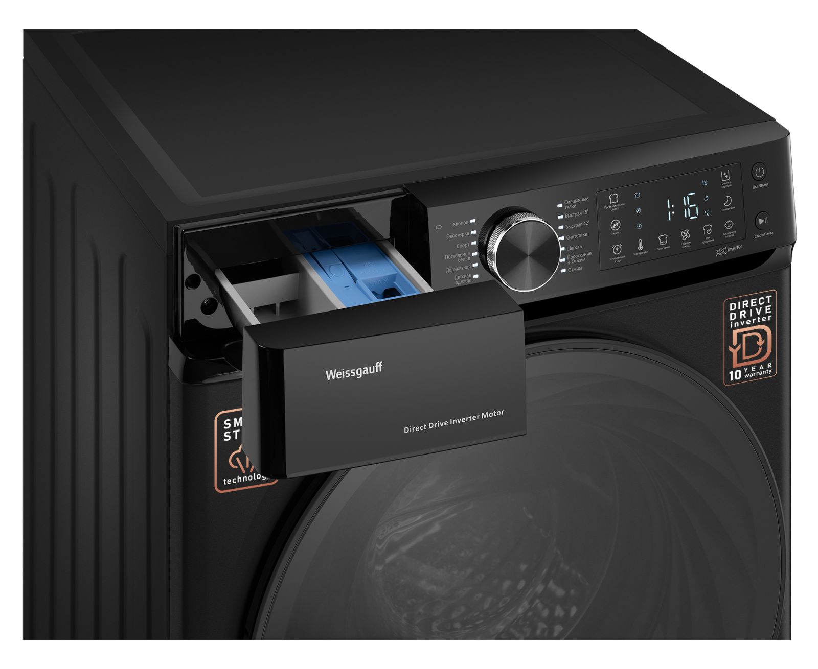 Стиральная машина Weissgauff WM 59411 Direct Drive Inverter Steam Matt Black