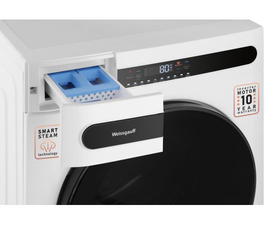 Отдельностоящая стиральная машина с сушкой и функцией пара Weissgauff, оснащенная инверторным двигателем, работающим по особой технологии BLDC, имеет действительно большой показатель загрузки до 8 кг белья при стирке и 5 кг и при сушке, а также впечатляющую скорость отжима до 1400 оборотов в минуту - это гарантия высокого результата при каждой стирке вашего белья.