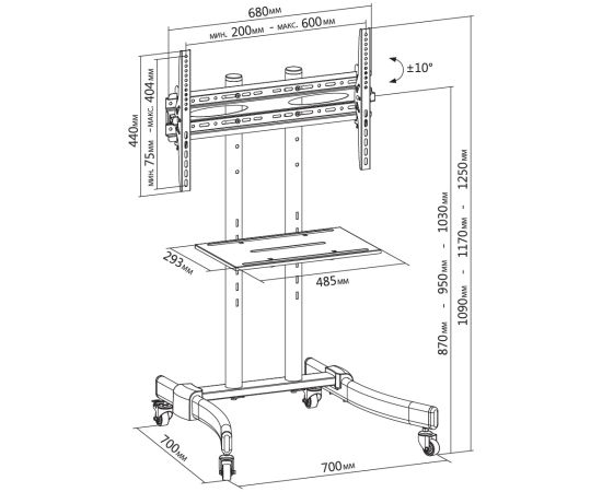 Максимальный вес оборудования: 50 кг