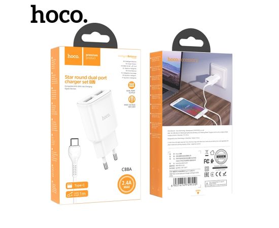 СЗУ 2USB 2.4A для Type-C Hoco C88A 1м (White)