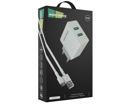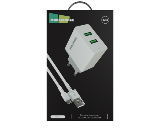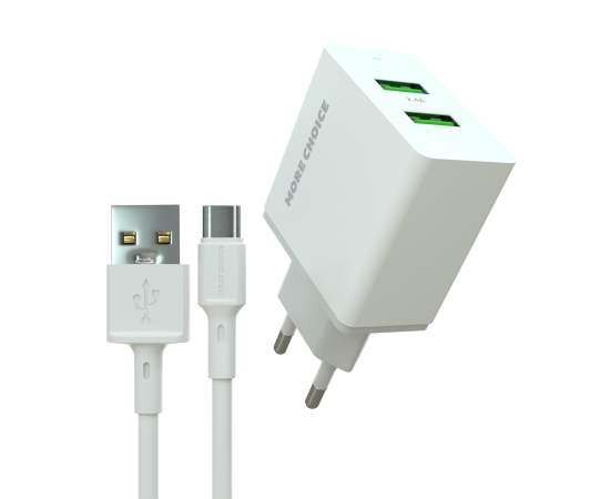 СЗУ 2USB 2.4A для Type-C More choice NC11a (White)