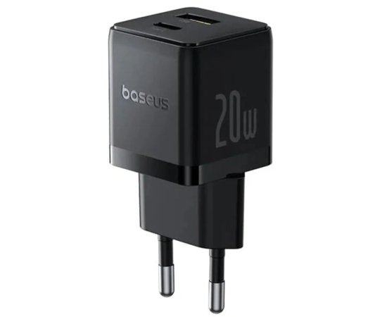 СЗУ BASEUS P10111608113-01 Palm Fast Charger C+U 20W EU With Baseus Mini White Cable USB-C to USB-C 60W (20v/3A) 1m Cluster Black