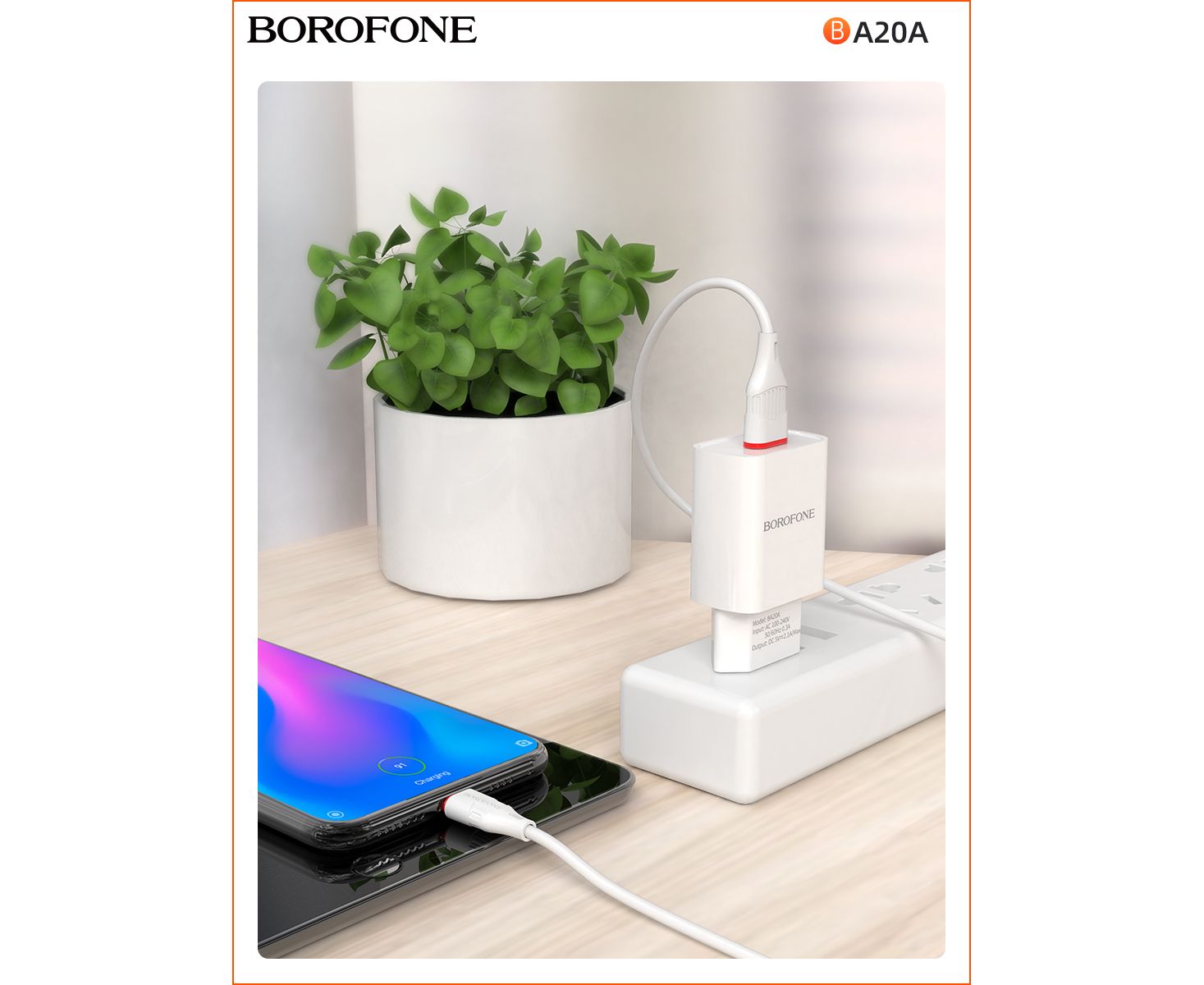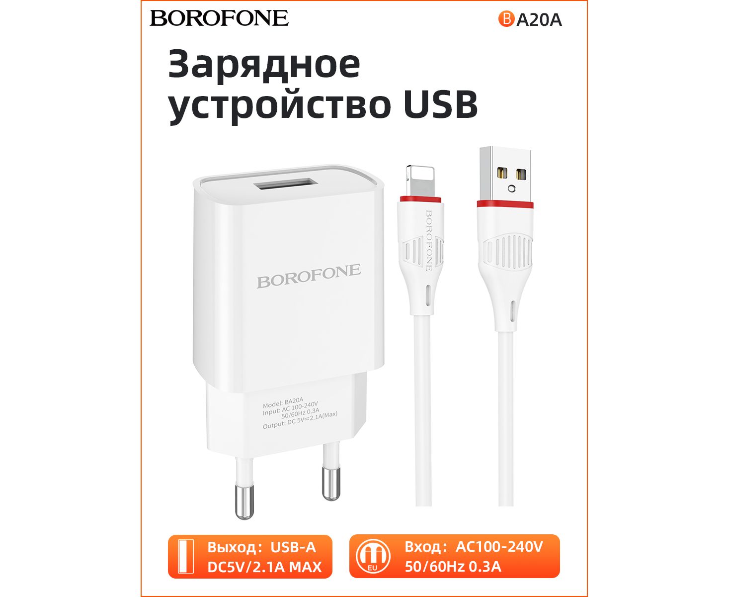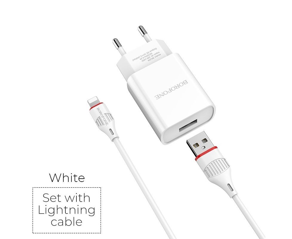 СЗУ BOROFONE BA20A Sharp 1USB, 5V, 2,1A + Lightning (белый)