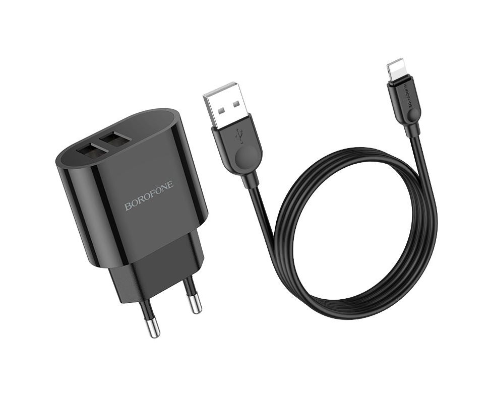 СЗУ BOROFONE BA63A Richy 2USB, 5V, 2.4A digital display + lightning (чёрный)