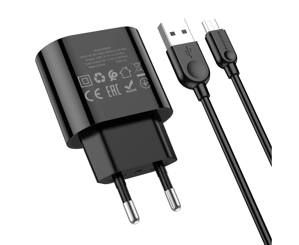 СЗУ BOROFONE BA63A Richy 2USB, 5V, 2.4A digital display + Micro (чёрный)