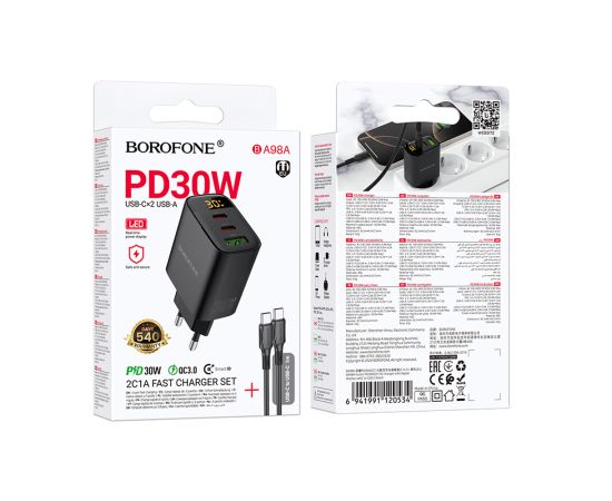 СЗУ BOROFONE BA98A Ilustre PD30W(2C1A) with digital display (C to C) (черный)