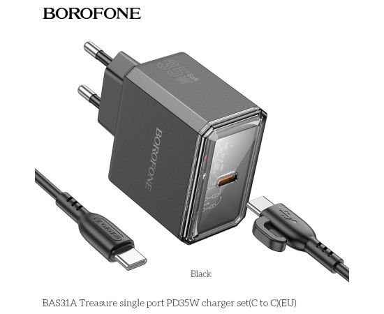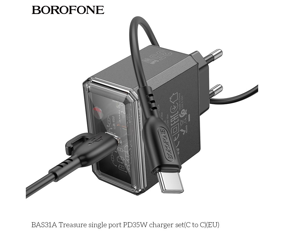 СЗУ BOROFONE BAS31A Treasure single port PD35W charger set(C to C)(EU) (чёрный)