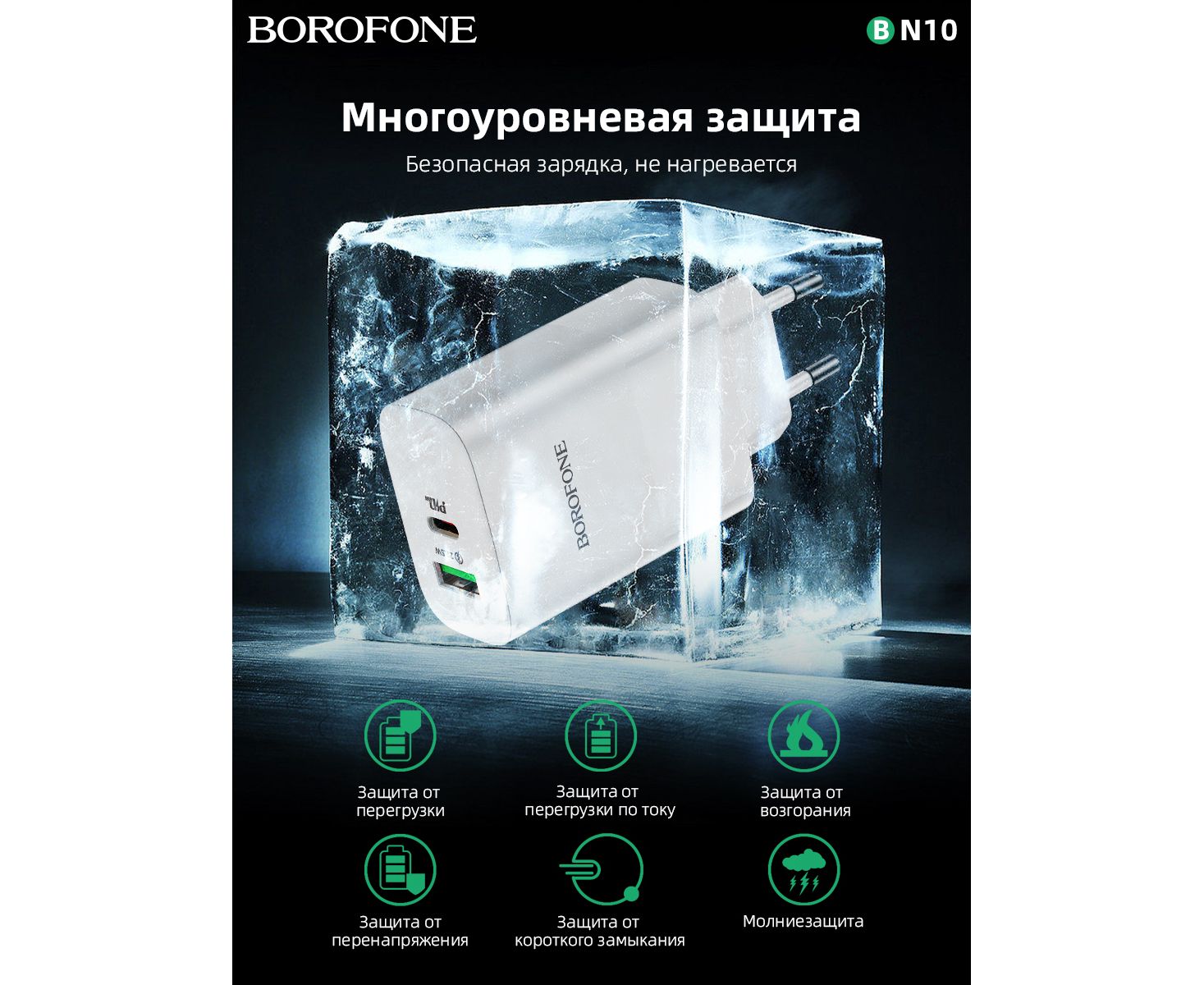СЗУ BOROFONE BN10 Sunlight 2USB, PD65 (1A1C) (белый)