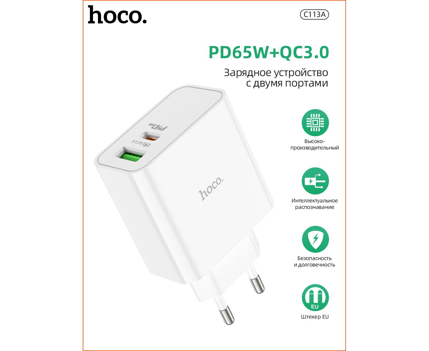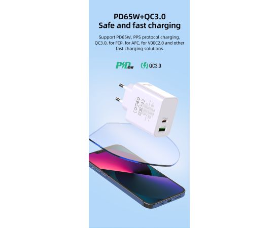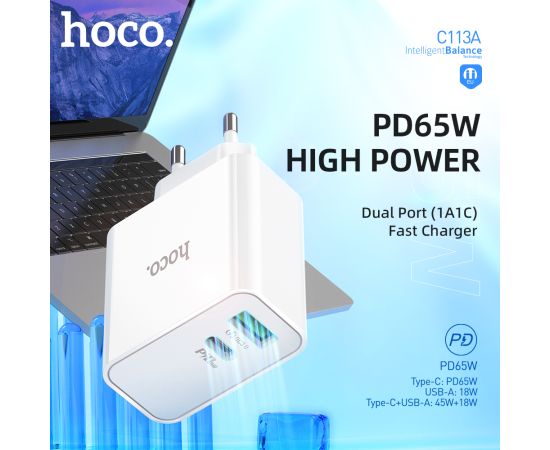 СЗУ HOCO C113A Аwesome 2USB, PD65W, 1A1C, (EU) (белый)