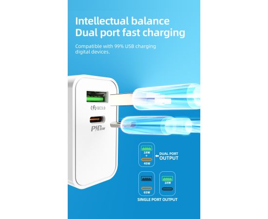 Тип-C+USB-A: 45 Вт+18 Вт
