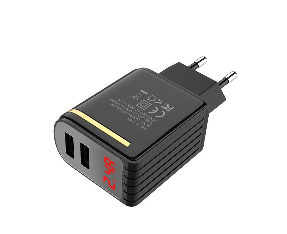 СЗУ HOCO C39A Enchanting dual-port, digital display 2.4A, black