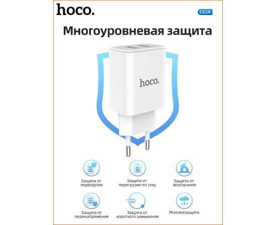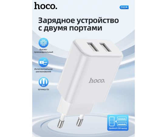 СЗУ Hoco C62A Victoria dual port 2.1A, white