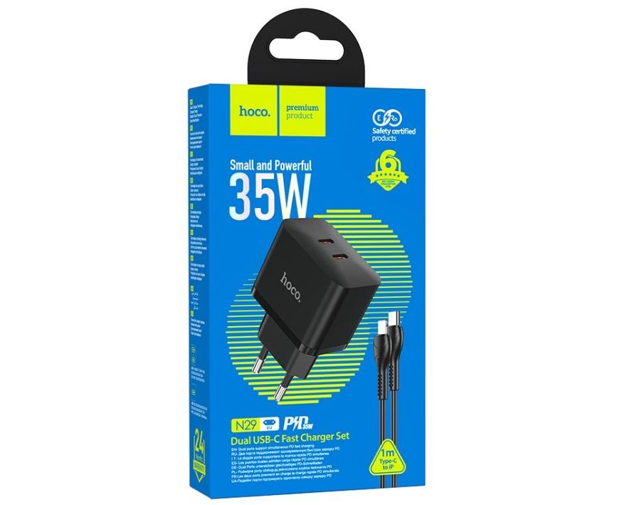 СЗУ HOCO N29 Triumph 2USB, PD35W, Type-C + lightning (черный)