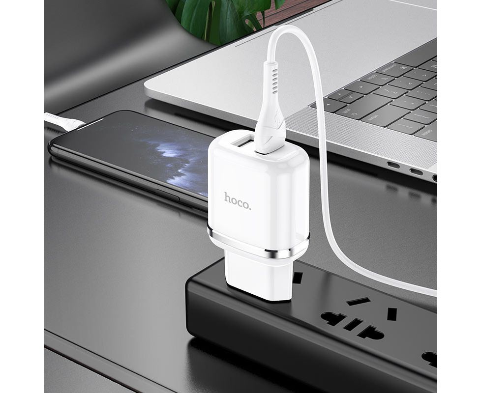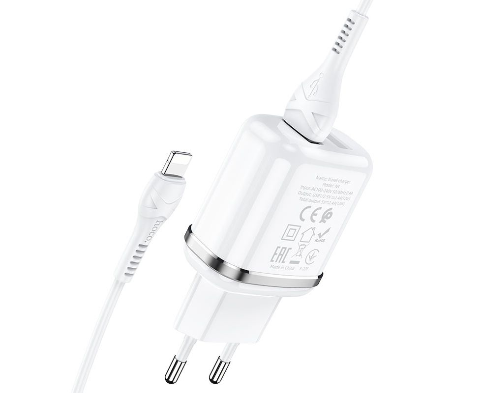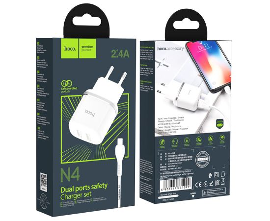СЗУ HOCO N4 Aspiring 2USB +Lightning 2.4A, белый