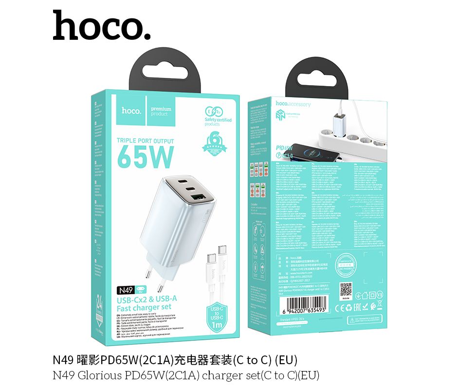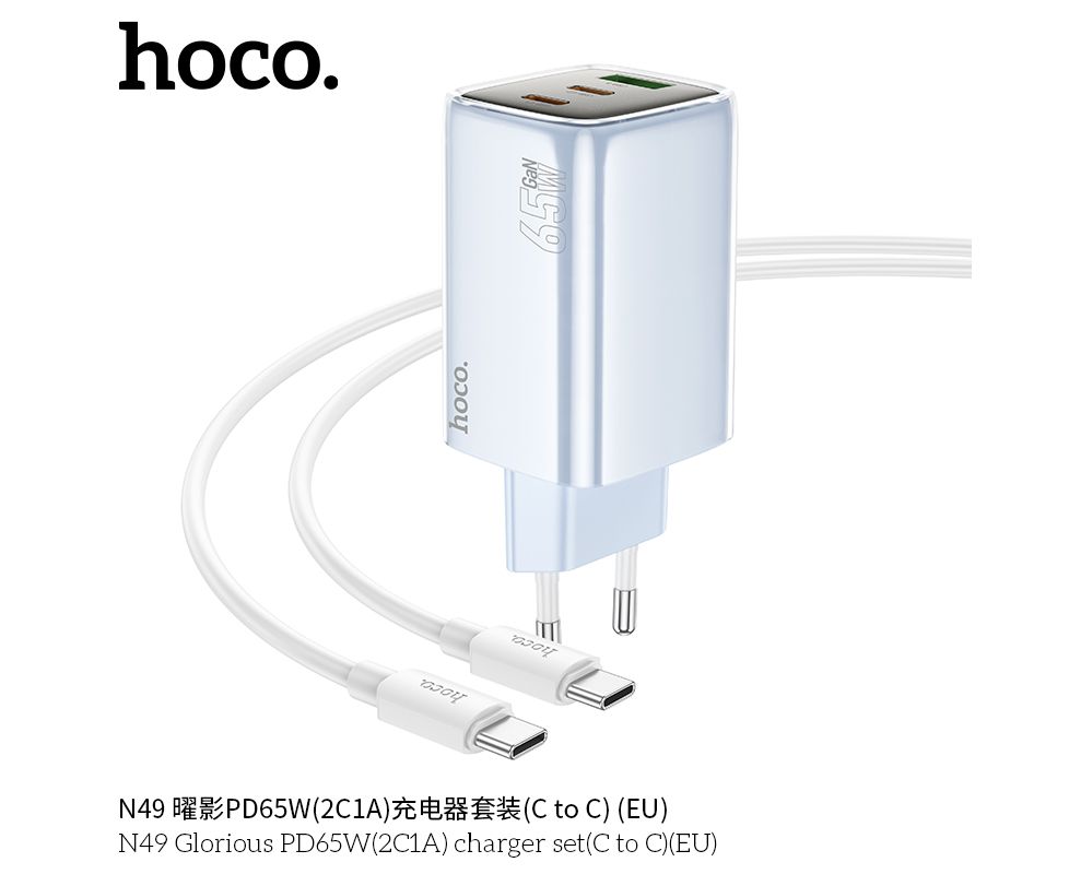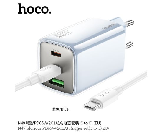 СЗУ HOCO N49 Glorious PD65W(2C1A) cabel Type-C to Type-C (голубой)