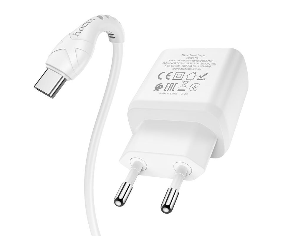 СЗУ HOCO N5 Favor 2USB, PD20W, QC3.0 charger set, Type-C + lightning (белый)