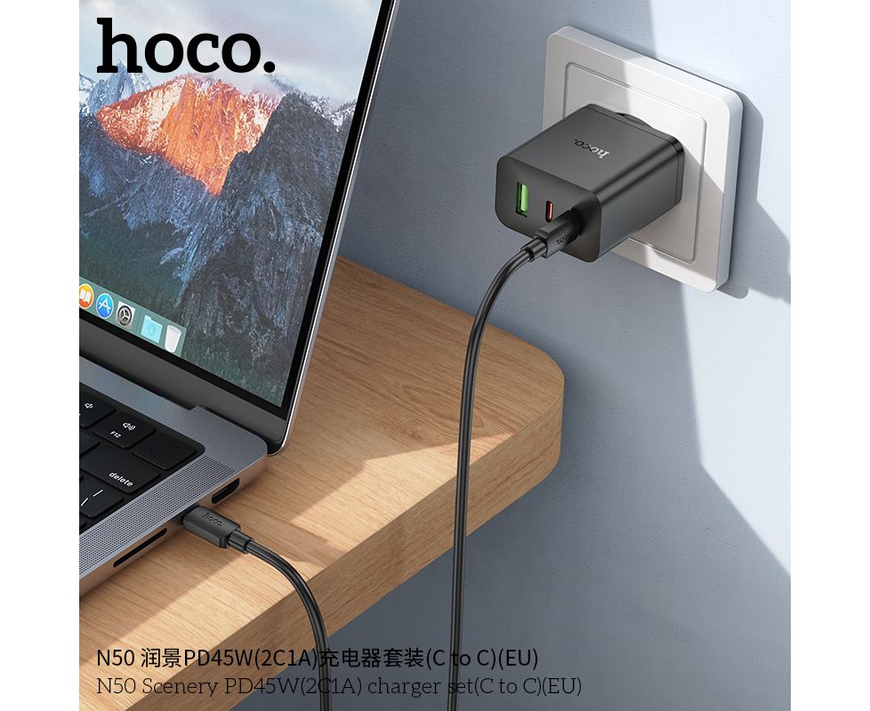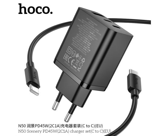 СЗУ HOCO N50 Scenery PD45W(2C1A) cabel Type-C to Type-C (черный)