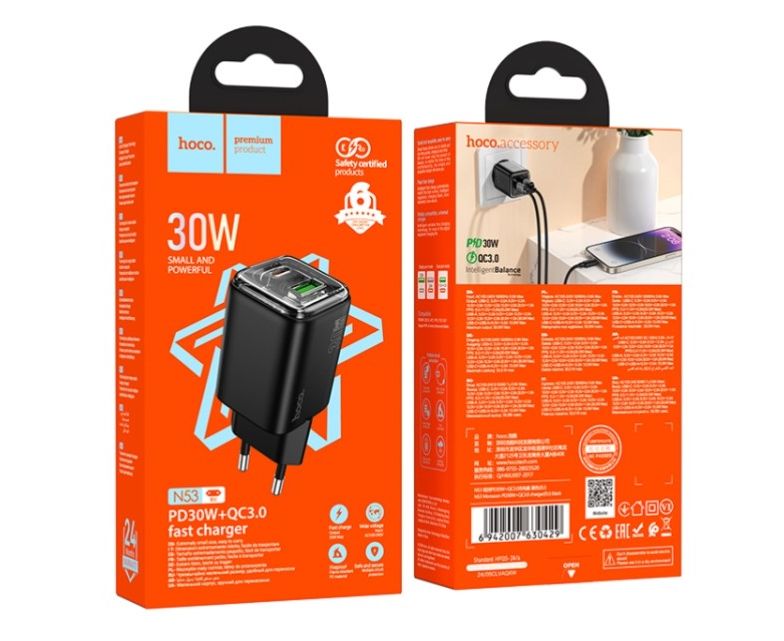 СЗУ HOCO N53 Monsoon PD30W+QC3.0 charger(EU) black