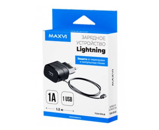 СЗУ Maxvi TCM-101LB 1A, Lightning, 1xUSB-A, black