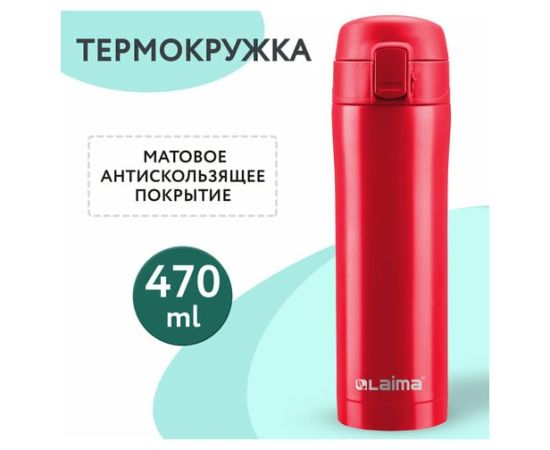 Термокружка LAIMA 608081 470мл из нерж SUS304, бургундский красный матовый