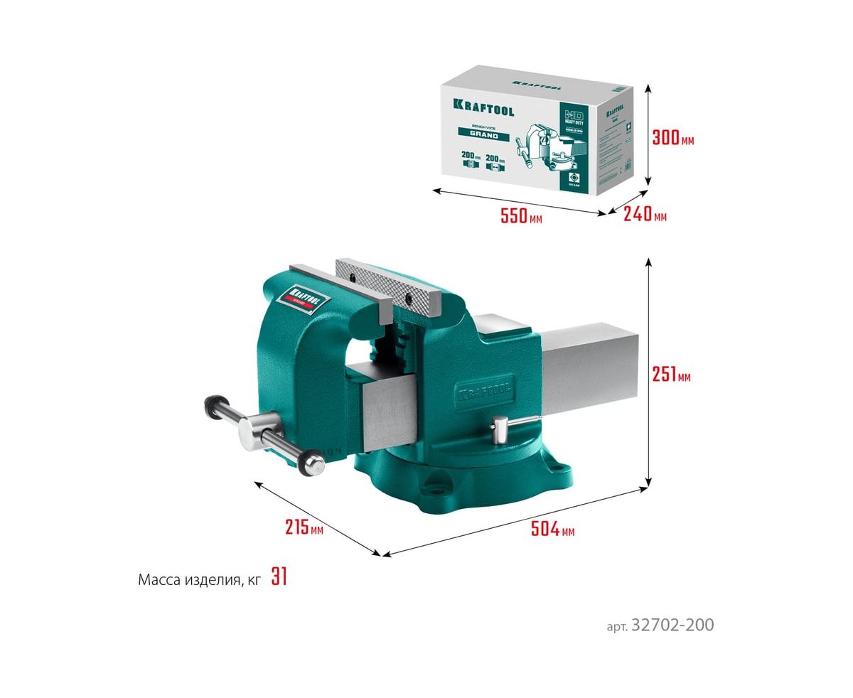 Тиски слесарные KRAFTOOL Grand 32702-200 200 мм